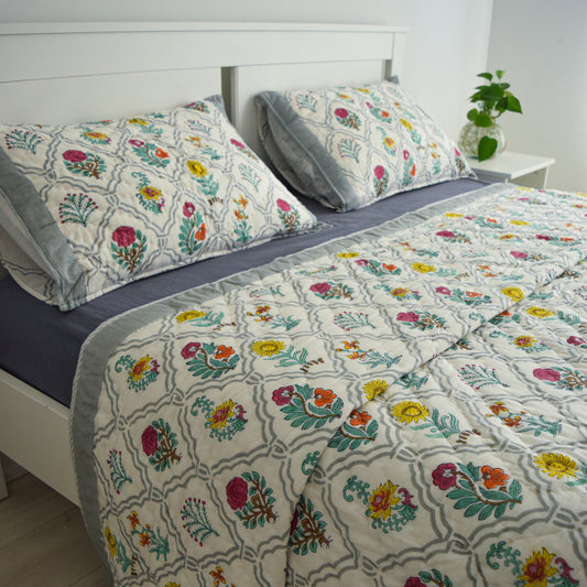 Crafted from 100% breathable cotton, this quilt is lightweight but still warm enough to keep you comfy through cooler nights. And thanks to precision computer embroidery, every stitch is beautifully consistent—giving you the charm of hand-detailed design with the quality and neatness of modern technique.